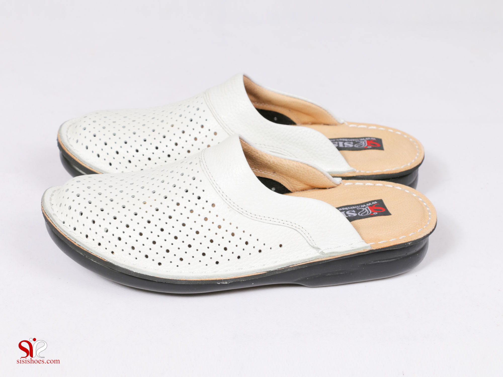 دمپایی-چرمی-کاستر-سوراخ-دار-رنگ-سفید-سی-سی-...