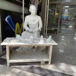 حاج-محمد-خادم-در-کنار-تندیس-پدر-کفش-دستدوز-...